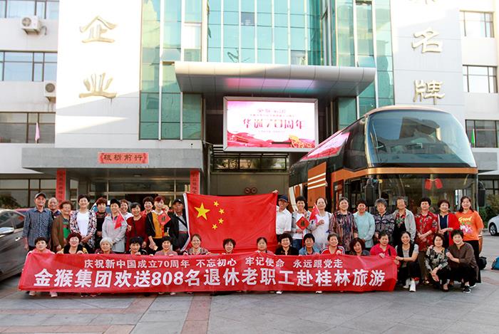 據(jù)悉,金猴集團(tuán)自成立以來,始終秉承關(guān)愛老職工、人走茶不涼的傳統(tǒng),退休職工曾為集團(tuán)發(fā)展做出過貢獻(xiàn),在職時(shí)集團(tuán)傾情關(guān)懷,退休以后集團(tuán)也一如既往,每年廠慶都發(fā)放紀(jì)念品,不定期組織聚會(huì)和外出旅游,省內(nèi)景區(qū)幾乎都走遍了,近年來還組織去外地和國外旅游,如大連、長(zhǎng)江三峽、韓國等地,讓退休老職工始終感受到金猴集團(tuán)大家庭的真情和溫暖。
