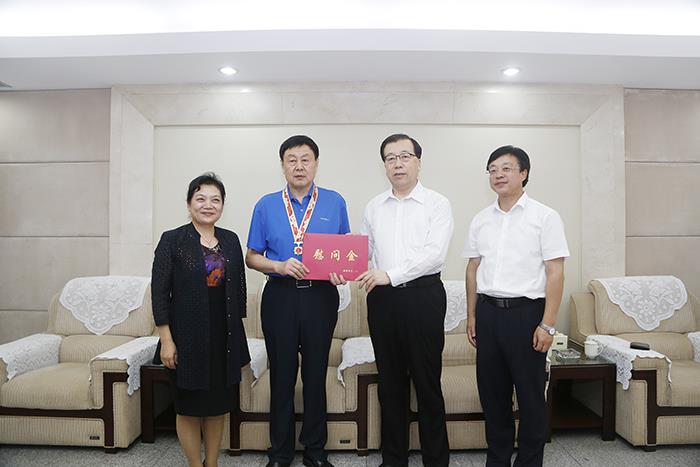 9月25日,在新中國成立70周年之際,省委常委、統(tǒng)戰(zhàn)部長、省總工會主席張江汀,市委常委、組織部長劉運,市人大常委會副主任、市總工會主席張競走訪慰問全國勞動模范、金猴集團董事長柳富林,并為其頒發(fā)“慶祝中華人民共和國成立70周年”紀念章和慰問金。