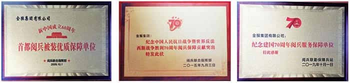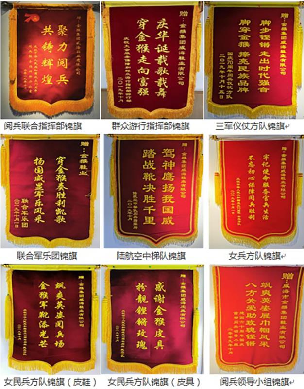 本次閱兵,金猴的服務(wù)和產(chǎn)品質(zhì)量得到官兵好評,為此,閱兵聯(lián)合指揮部、相關(guān)方隊及北京群眾游行指揮部專門為金猴集團制作了感謝信和錦旗。