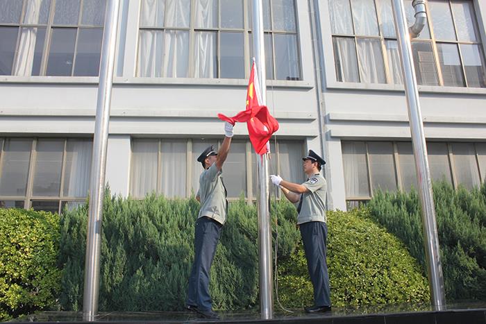 上午8時(shí)30分,升國旗儀式正式開始,護(hù)旗手邁著矯健的步伐,護(hù)衛(wèi)著五星紅旗走向升旗臺(tái)。伴隨著雄壯嘹亮的國歌《義勇軍進(jìn)行曲》,升旗手奮力揮臂將國旗拋向空中,鮮艷的五星紅旗冉冉升起,飄揚(yáng)在祖國的天空。隨后,全體干部職工懷著無比激動(dòng)的心情,齊聲高唱《歌唱祖國》,并用力揮舞手中的小國旗,以此表達(dá)對(duì)偉大祖國的深切熱愛和美好祝福。