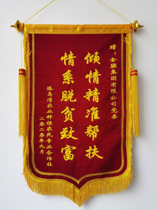 近日,乳山市塔島灣農(nóng)業(yè)種植農(nóng)民專業(yè)合作社給集團黨委送來書有“傾情精準幫扶 情系脫貧致富”的錦旗,以感謝金猴集團在消費扶貧工作中對他們的支持和幫助。
