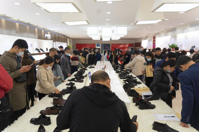 上午九點(diǎn),選樣活動正式開始。經(jīng)銷商們一走進(jìn)大廳,目光隨即被頗具特色的展廳布置所吸引,大廳中心分三部分陳列,包括男鞋區(qū)、女鞋區(qū)和陳列展示區(qū),柔和的燈光讓整個(gè)大廳顯得更加美觀溫馨。此次新品發(fā)布會上春季新款男鞋和女鞋樣品豐富、時(shí)尚新穎、色彩多樣,無論是女士通勤、休閑款,還是男士商務(wù)、休閑款,應(yīng)有盡有。其中,老爹鞋、小白鞋、樂福鞋、飛織鞋等休閑款式面向年輕顧客群,滿足了經(jīng)銷商多方位的選擇需求。