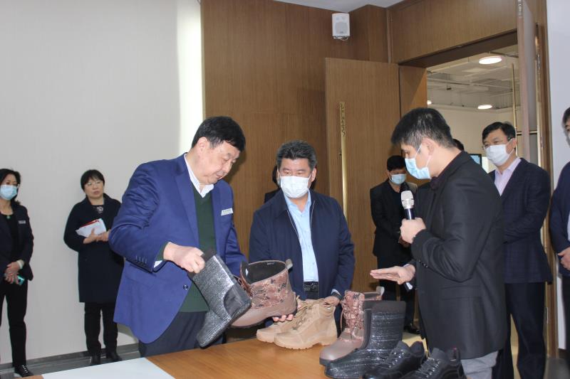 在膠東(威海)黨性教育基地教學(xué)點金猴展陳館,孫副市長認真聽取了公司發(fā)展歷程和企業(yè)文化建設(shè)情況的講解,對公司品牌建設(shè)、技術(shù)研發(fā)、軍民融合等方面取得的成績給予充分肯定。公司技術(shù)人員現(xiàn)場向?qū)O副市長演示了今年為部隊研發(fā)并列裝的輕便防寒靴、極寒保暖靴、神舟十二號航天員返航著陸專用鞋以及已研發(fā)成功并即將列裝的單兵作戰(zhàn)背負系統(tǒng),其展現(xiàn)的材料創(chuàng)新、工藝創(chuàng)新、功能創(chuàng)新,令孫副市長印象深刻并極力稱贊。