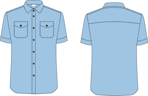 短袖施工服上衣不使用拉鏈,前門(mén)襟處由鈕扣固定。上衣胸前直插口袋兩個(gè),領(lǐng)子為翻領(lǐng)結(jié)構(gòu),袖口、下擺做包邊處理。