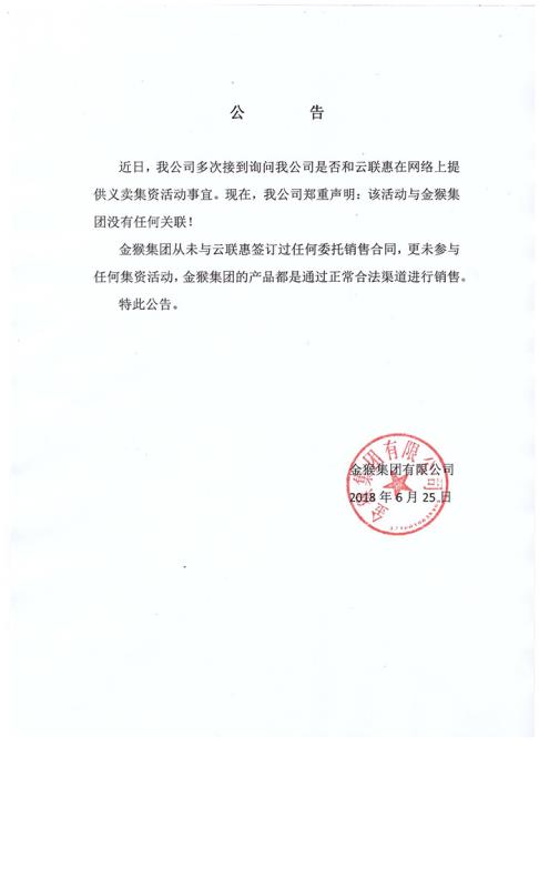 金猴集團(tuán)未參與網(wǎng)絡(luò)集資活動的公告